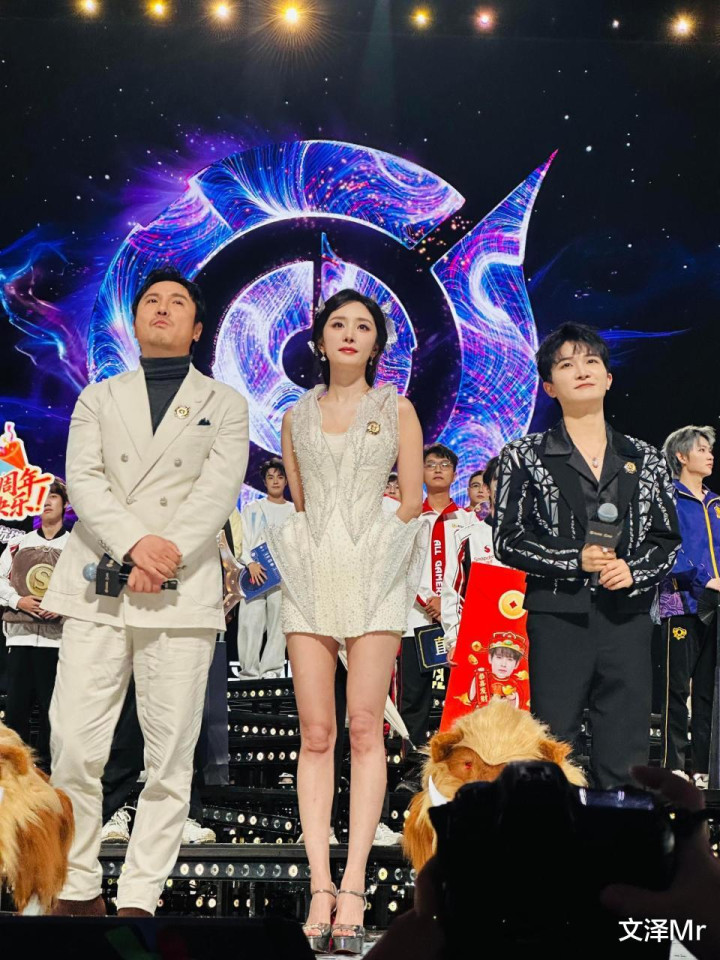 她与黄明昊互动时的俏皮表情更显真实 —— 当黄明昊爆料 “她总抢我中路线”,她立刻反击 “你前一天还说不杀我,转天就把我单杀在塔下”。这种不端架子的真实感,让她既 hold 住高定的优雅,又接得住电竞圈的梗,成为当晚跨界最成功的嘉宾。